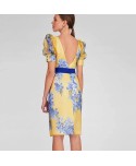 El vestido de fiesta corto estampado Esperanza Maria Lago destaca por su elegancia y originalidad, convirtiéndose en la opción perfecta para ocasiones especiales. Su diseño en corte recto favorece la silueta, mientras que el estampado floral en tonos suaves contrasta con el fondo rojo intenso, creando un estilo sofisticado y llamativo. Las mangas abullonadas en gasa aportan volumen y movimiento, añadiendo un toque romántico y delicado. El cinturón verde realza la cintura y aporta frescura al conjunto, equilibrando la fuerza del estampado con un detalle sutil y elegante. Este vestido es ideal para bodas de día, cócteles, comuniones o cualquier celebración donde quieras destacar con estilo propio. La calidad en sus acabados lo convierte en una prenda exclusiva y atemporal, pensada para mujeres que buscan sofisticación y distinción.